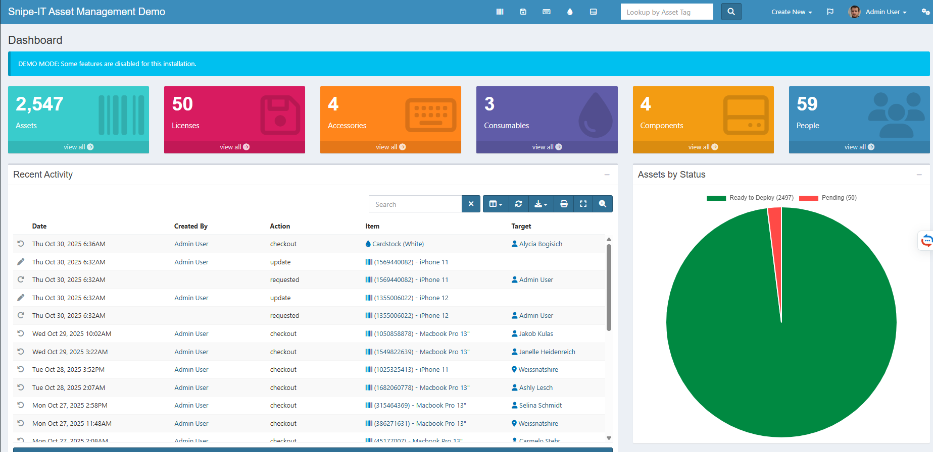 Snipe-IT is an open-source IT asset management system basically, software that helps you track and manage your company’s physical and digital assets (like laptops, phones, software licenses, and accessories).